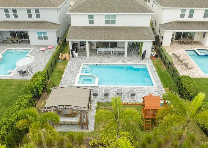 House Resort At Encore Reunion Disney villa ligt op 10-minuten rijden van het Ship Wreck Island Water Park en nodigt gasten uit om te gaan tafeltennis en biljart in de omgeving. De beschikbaarheid van een bubbelbad zorgt voor een ontspannend uitje in de wijk Celebration.